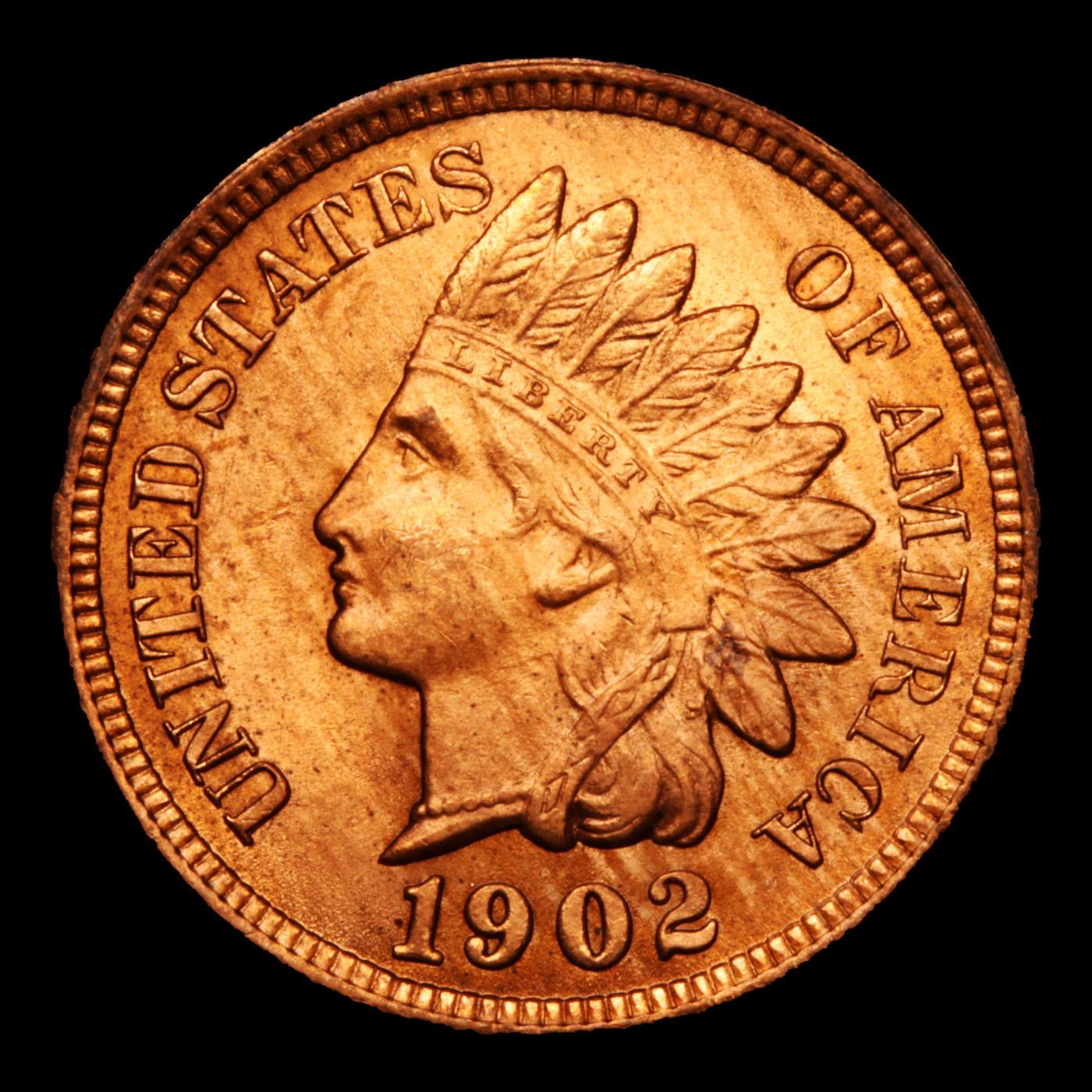 1902 Indian Cent 1c Grades Gem+ Unc RB.