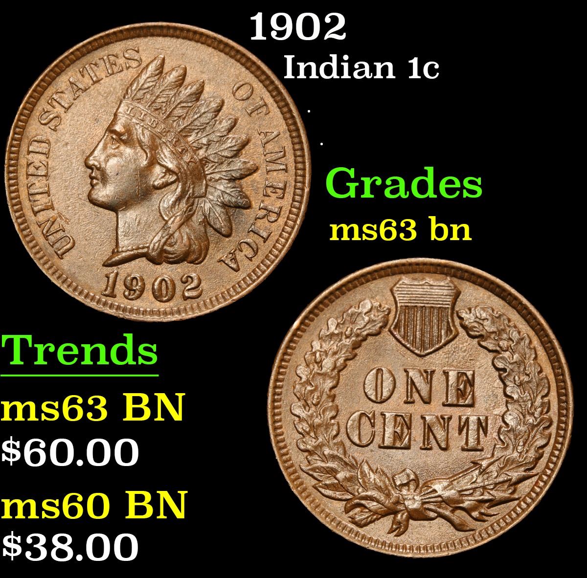 1902 . . Indian Cent 1c Grades Select Unc BN.