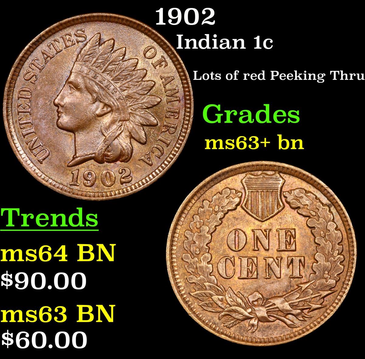 1902 Lots of red Peeking Thru . Indian Cent 1c Grades Select+ Unc BN.