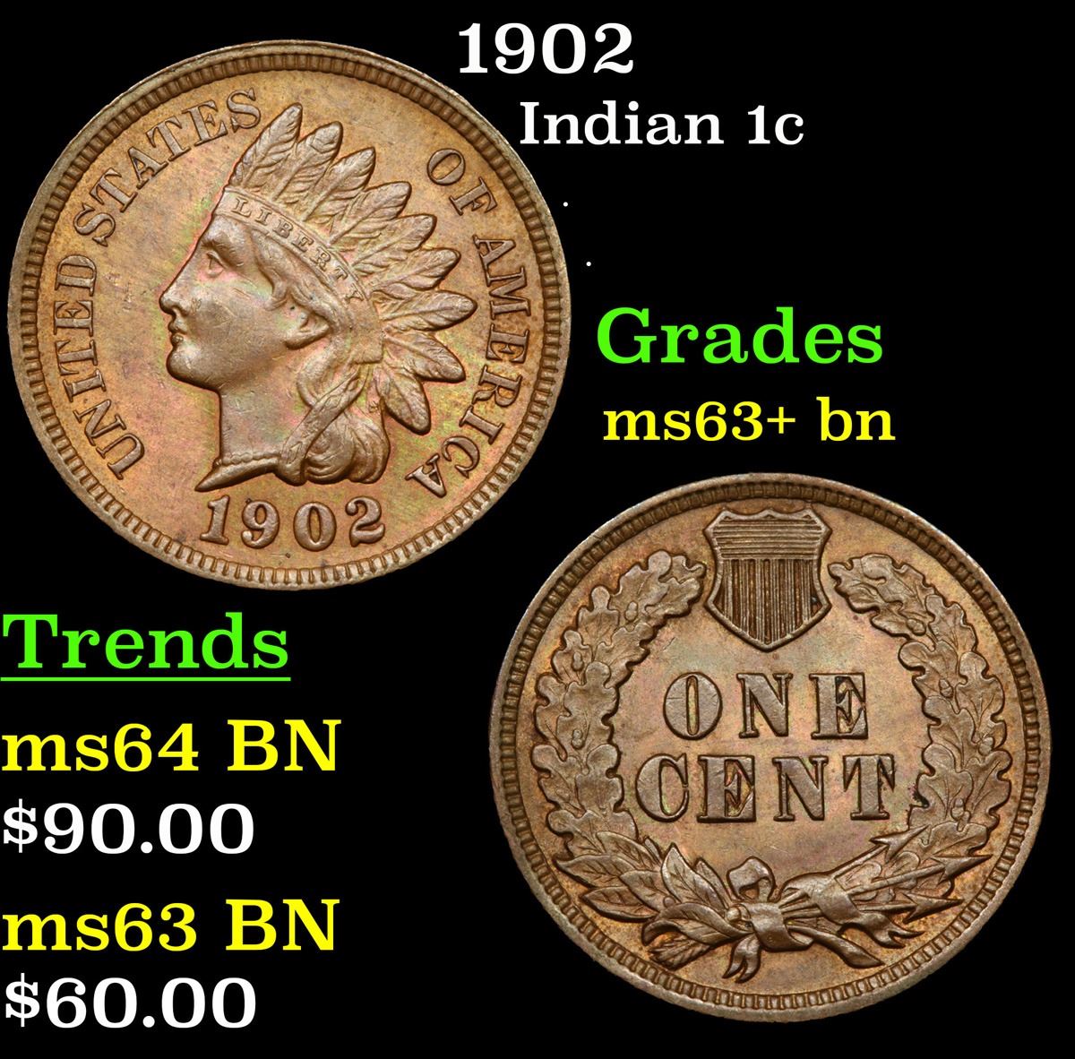 1902 Indian Cent 1c Grades Select+ Unc BN.