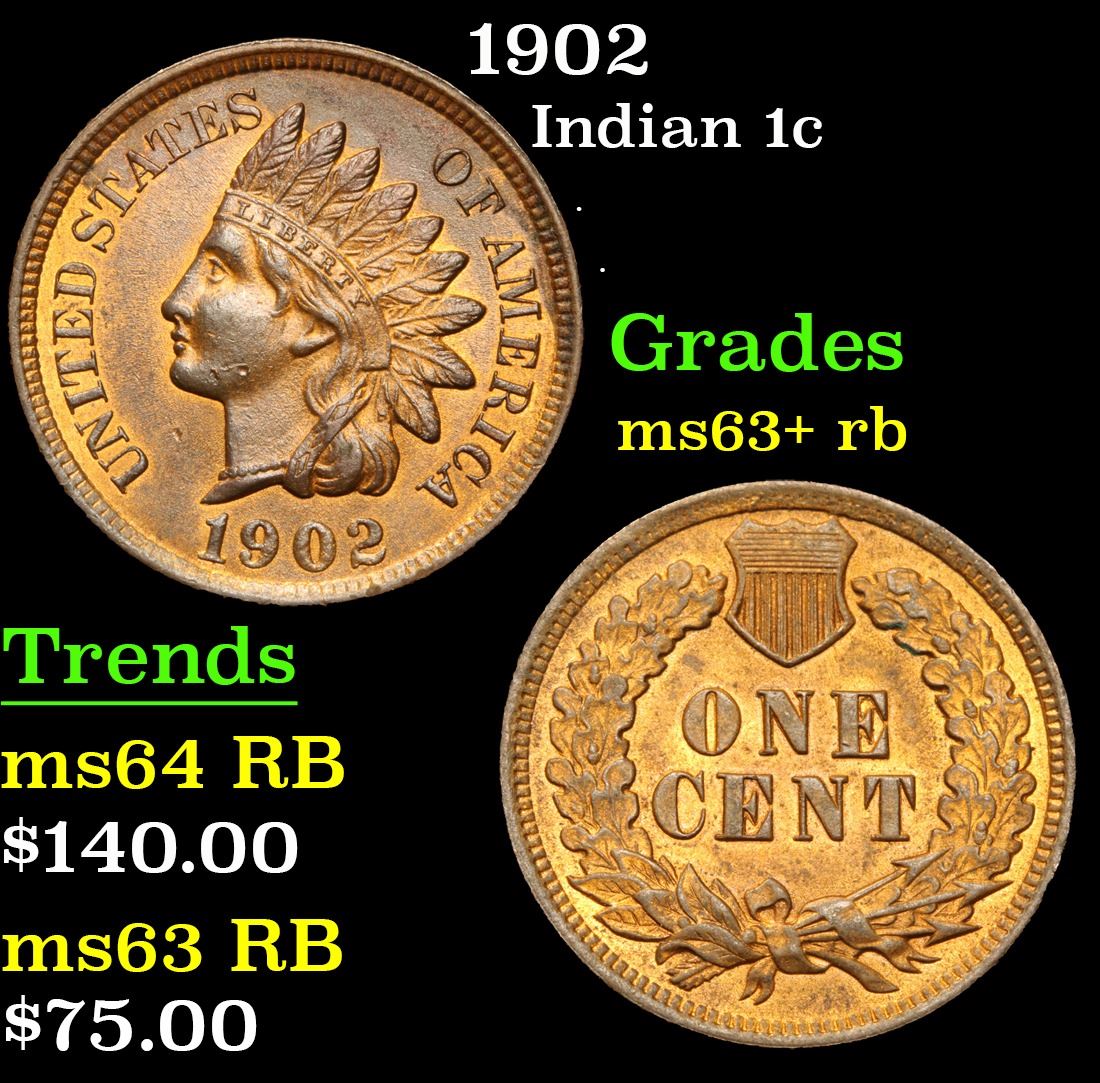 1902 . . Indian Cent 1c Grades Select+ Unc RB.
