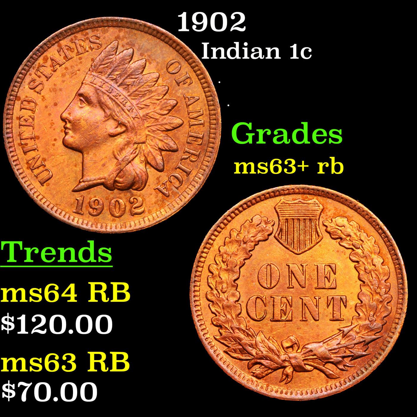 1902 Indian Cent 1c Grades Select+ Unc RB.