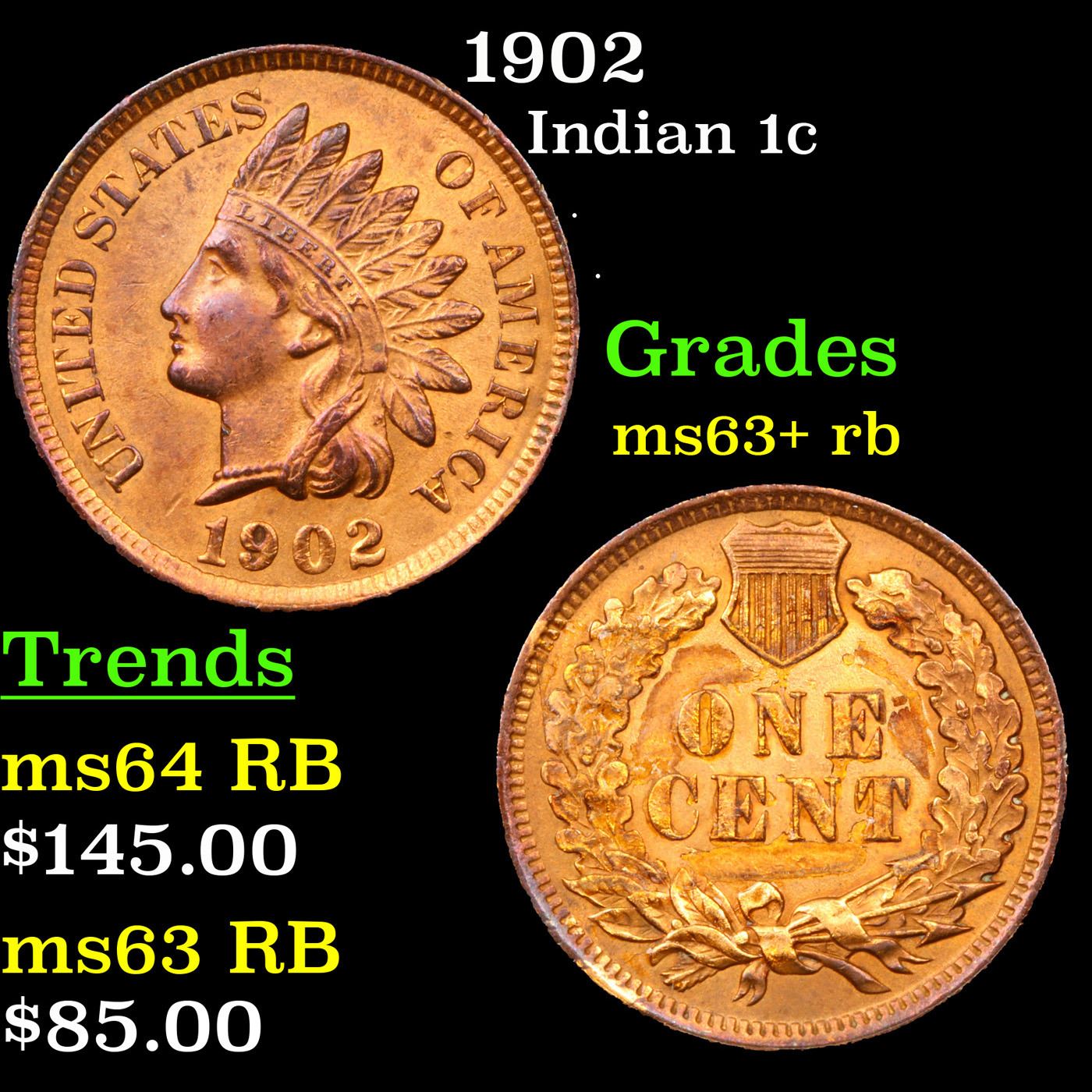 1902 Indian Cent 1c Grades Select+ Unc RB.