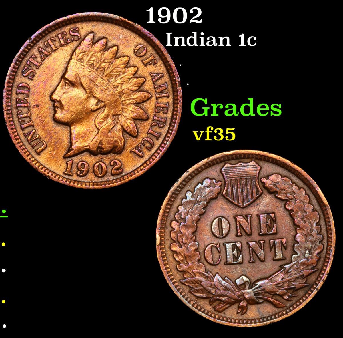1902 Indian Cent 1c Grades vf++.