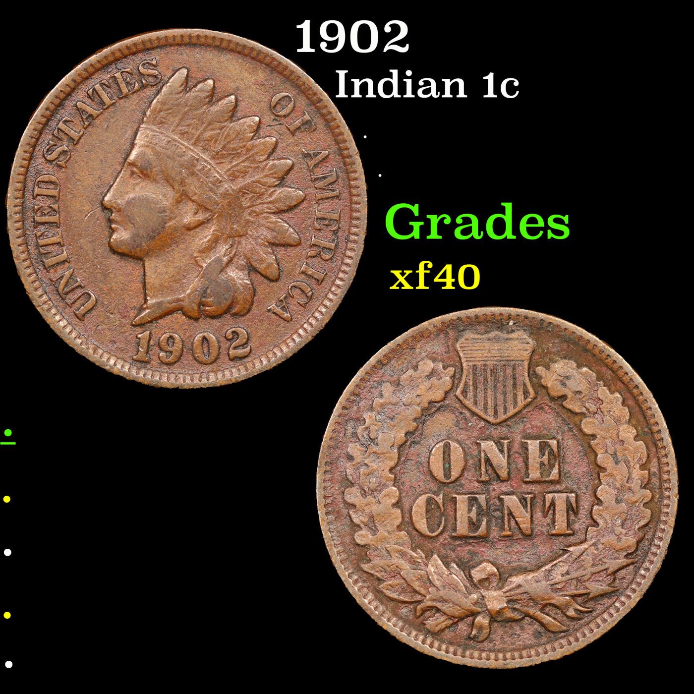 1902 Indian Cent 1c Grades xf.