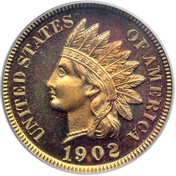 1902 Indian Head Cent. PCGS graded Proof 66 Red Cameo. A lovely red Proof cent, gleaming with originality, dusted with fantastic cameo frost on all the high points. Pop 3; none finer at PCGS in Proof Red Cameo (PCGS # 82395) .