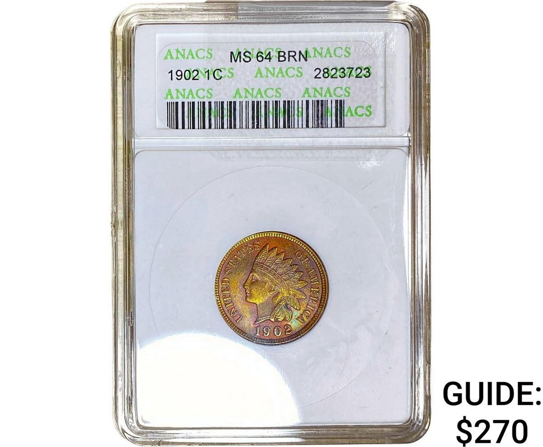 1902 Indian Head Cent ANACS MS64 BRN