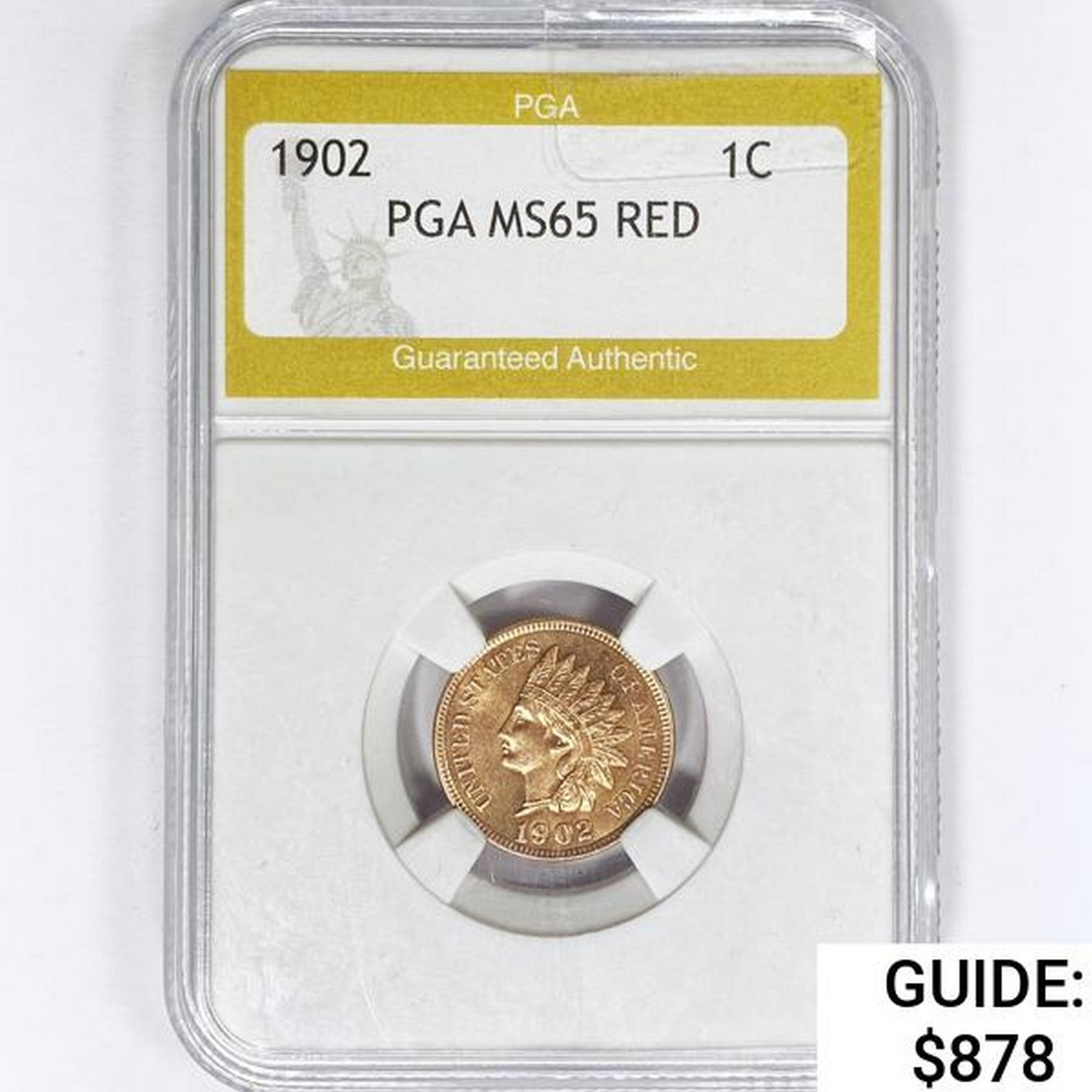 1902 Indian Head Cent PGA MS65 RED
