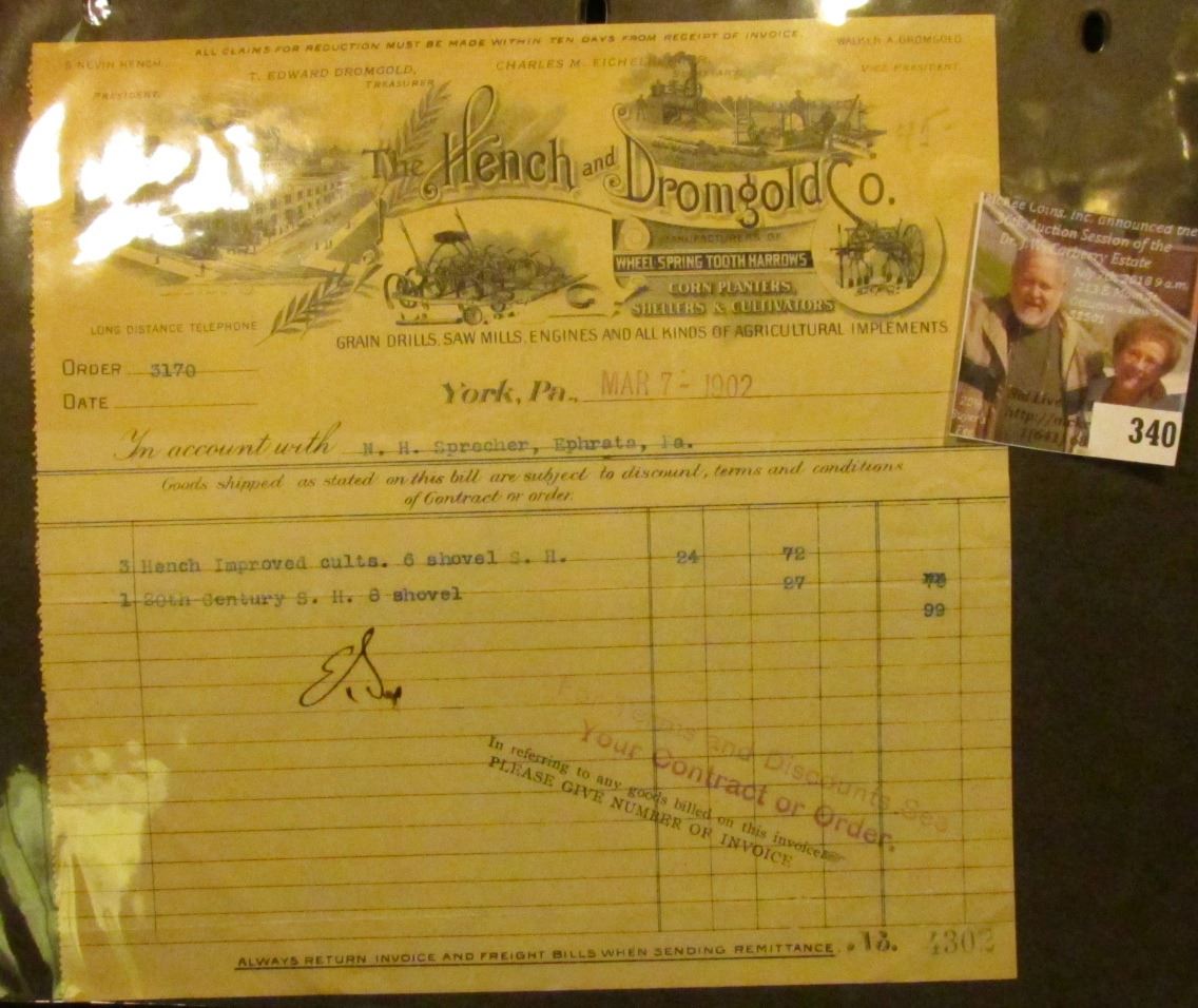 1902 Invoice "The Hench and Dromgold Co." Invoice, which 'Doc' valued at $45; receipt from "Martin C