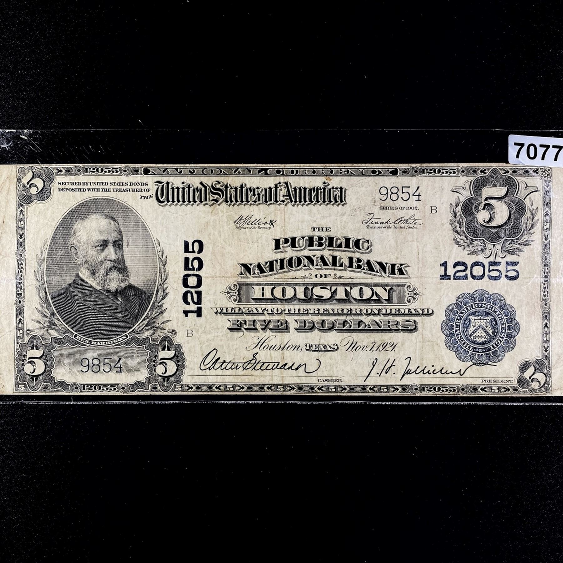 1902 LG $5 Dollar Houston TX National Bank Note