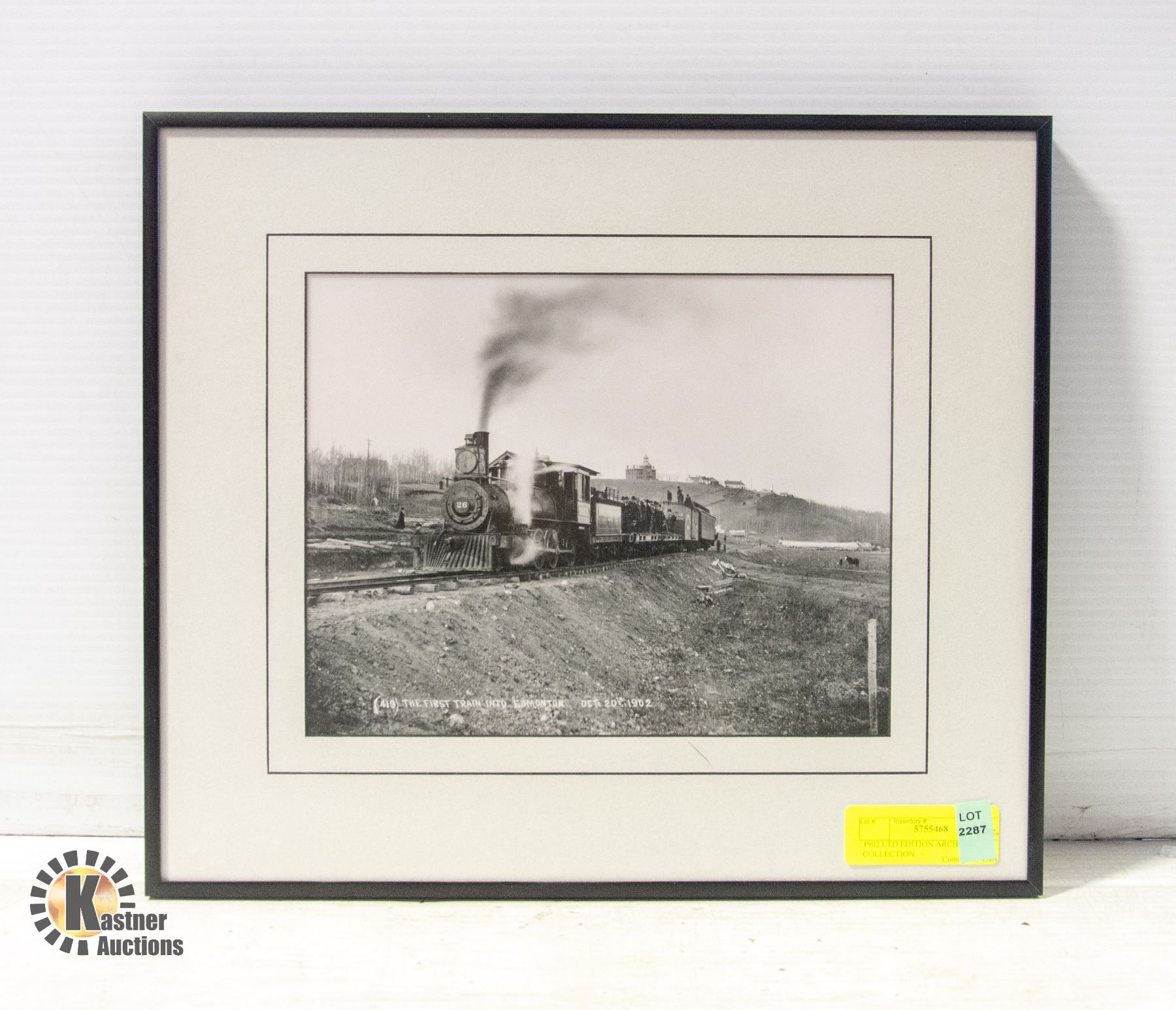 "FIRST TRAIN INTO EDMONTON - CANADIAN NORTHERN RAILWAY" FRAMED PHOTOGRAPHIC PRINT 13" X 15'
