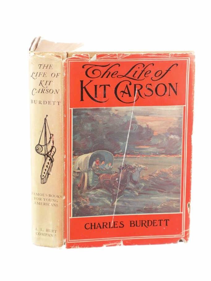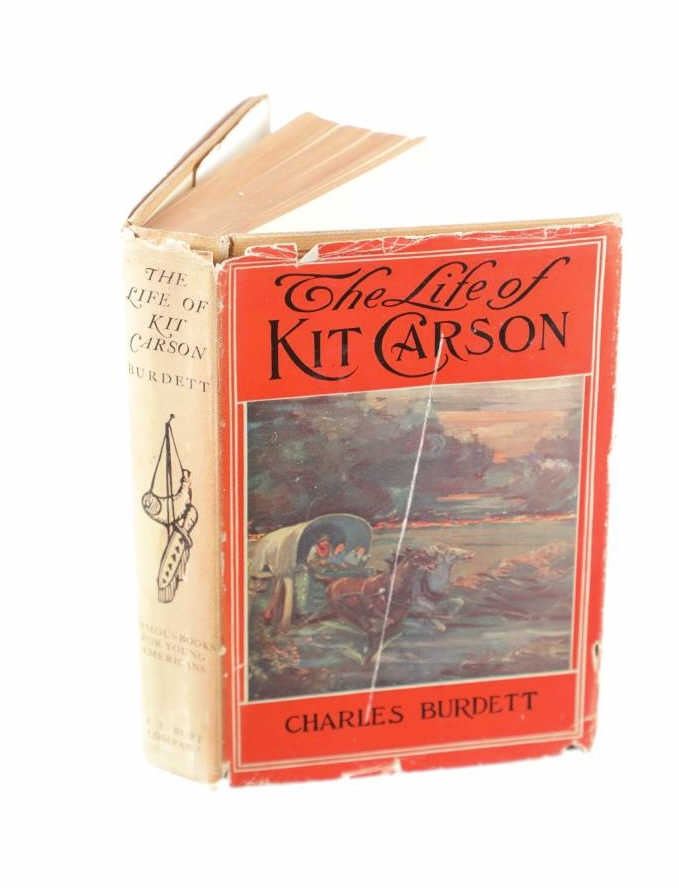 Featured in this lot is this 1902 edition of The Life of Kit Carson: The Great Western Hunter and Guide by Charles Burdett. The book chronicles the life and adventures of Christopher "Kit" Carson as one of the Old West's most famous hunter, guide and scout. Burdett portrays Carson as a classic American folk hero, describing his expeditions westward, his trade ventures, learning to fight from Native American Indians, and his settling in Indian cultures. Other notable topics include Carson's buffalo and bear hunting excursions, accounts of his involvement in John C. Fremont's expeditions, thrilling adventures and hair breadth escapes among the Indians and Mexicans, as well as his daring and invaluable services as a guide and scout. This tan cloth bound stamped texture hardcover is in good overall condition, very slight scuffing observed on cover edges. Top edge painted intact pages exhibit age tanning. No other obvious marring noted. Measures 5.5"W x 8.25"L x 1.25"D, weight 1lb.