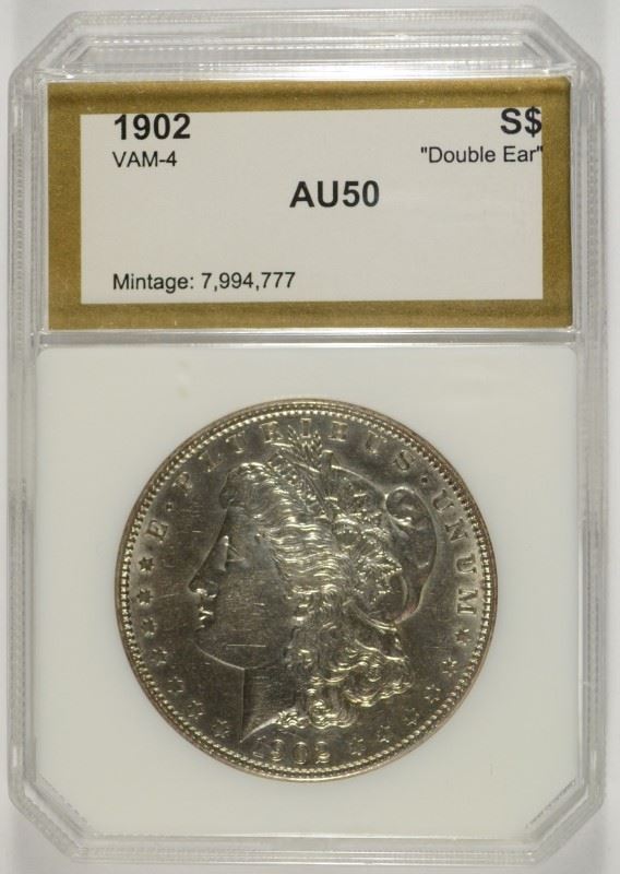 1902 MORGAN SILVER DOLLAR, PCI AU-50 VAM-4 RARE! TOP 100 & KEY TO THE 1902 VAMS