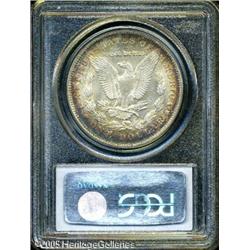 <B>1902<img border='0' src='http://www.heritagecoins.com/images/star.gif' width=10 height=10>$1 MS65 PCGS.</B></I> Slightly soft above the ear, and on the eagle's breast, with rich satiny luster and positively gorgeous dark-green, russet-red, and golden-brown peripheral toning, on both obverse and reverse. There are only two or three minor marks, on either side. Lot:10594