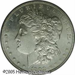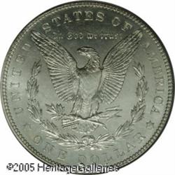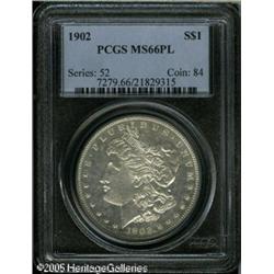 <B>1902<img border='0' src='http://www.heritagecoins.com/images/star.gif' width=10 height=10>$1 MS66 Prooflike PCGS.</B></I> Well defined in the central areas with slight weakness on a few of the stars. The surfaces are bright and untoned and the fields are nicely reflective with considerable evidence of die polishing. Lot:10599