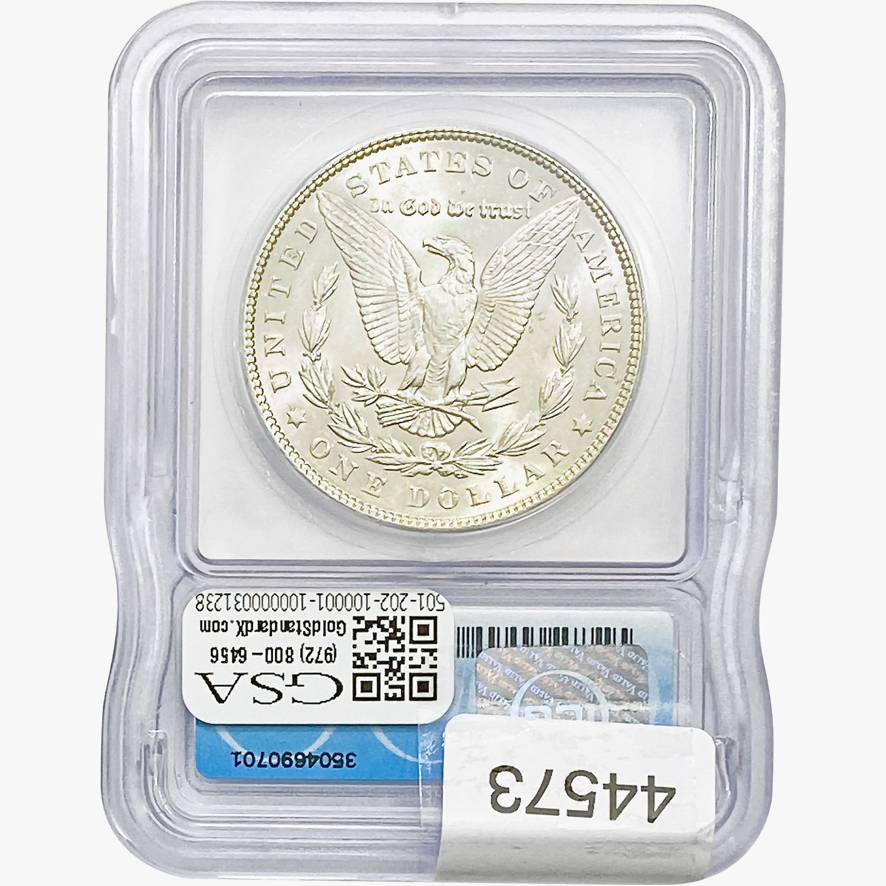 COINS AND CURRENCY LISTED IN GSA’S CATALOG AS GRADED AND ENCAPSULATED BY PCGS, NGC, ANACS, ICG, PCGS CURRENCY, PMG, PCGS BANKNOTE GRADING, CMC OR ANY OTHER THIRD-PARTY GRADING SERVICE ARE LIKEWISE SOLD “AS-IS” EXCEPT AS EXPRESSLY SET FORTH HEREIN. ALL THIRD-PARTY GRADING SERVICE GUARANTEES, INCLUDING AUTHENTICITY, ARE THE SOLE RESPONSIBILITY OF THE THIRD-PARTY GRADING SERVICE AND NOT WARRANTIES OR GUARANTEES OF GSA. BIDDERS SHOULD CONTACT THESE THIRD-PARTY GRADING SERVICES DIRECTLY WITH RESPECT TO ANY CLAIMS OR QUESTIONS THEY MAY HAVE CONCERNING THEIR GUARANTEES AND WARRANTIES. BIDDERS ACKNOWLEDGE AND AGREE THAT AUCTIONEER IS NOT BOUND BY OR LIABLE FOR ANY OPINION OR CERTIFICATION BY ANY THIRD-PARTY GRADING SERVICE. REMOVAL OF A PRODUCT FROM ITS PROTECTIVE CASING OR HOLDER OR ALTERATION OF ANY COIN HOLDER WAIVES ALL RIGHTS CONCERNING THE PRODUCT CONTAINED THEREIN.