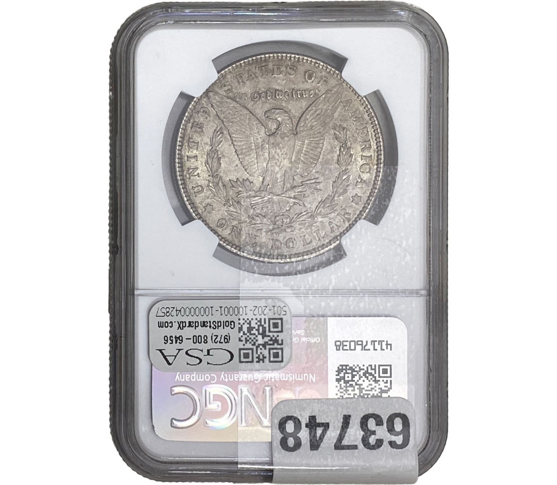 e. Coins sold referencing a third-party grading service are sold “AS IS” without any express or implied warranty, except for a guarantee by GSA that they are genuine. Removal or alteration of the holder, voids all of Bidder’s claims concerning that Product. Certain warranties may be available from the grading services and Bidders are referred to them for further details: Numismatic Guaranty Corporation (NGC), PO Box 4776, Sarasota, FL 34230, www.ngccoin.com/services/writtenguarantee.asp; Professional Coin Grading Services (PCGS), PO Box 9458, Newport Beach, CA 92658, www.pcgs.com/guarantee.html; ANACS, 6555 S. Kenton St., Ste. 303, Englewood, CO 80111; and Independent Coin Grading Co. (ICG), 7901 East Bellview, Ave., Suite 50, Englewood, CO 80111.