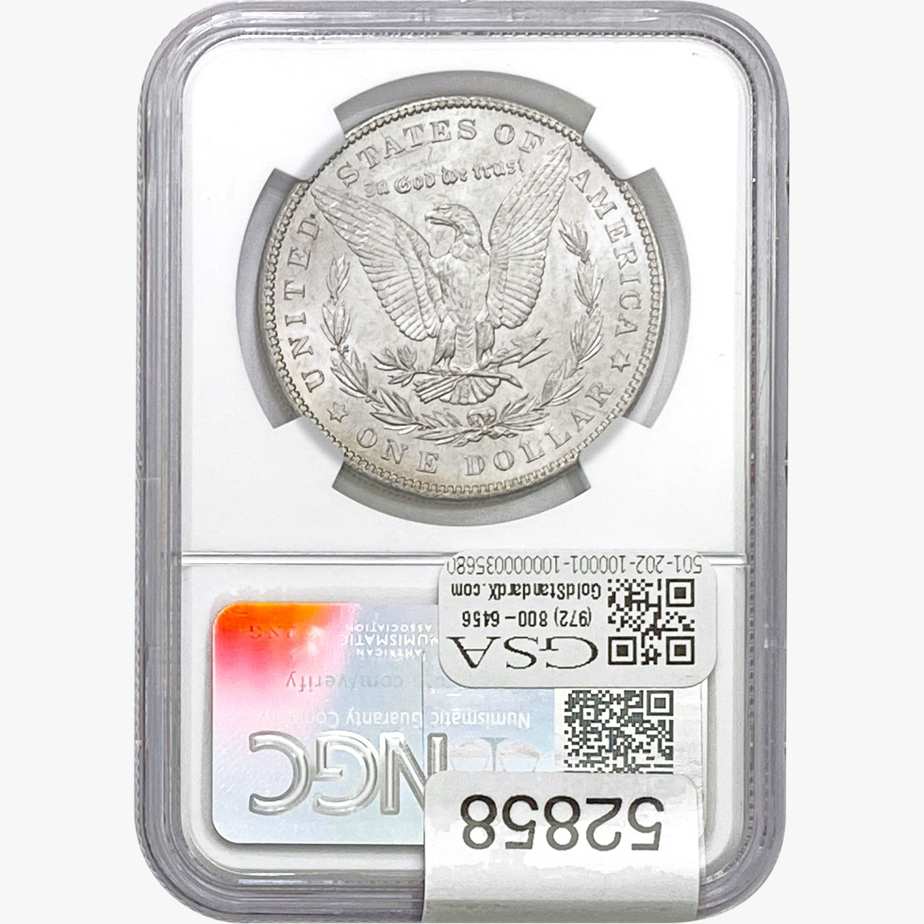 e. Coins sold referencing a third-party grading service are sold “AS IS” without any express or implied warranty, except for a guarantee by GSA that they are genuine. Removal or alteration of the holder, voids all of Bidder’s claims concerning that Product. Certain warranties may be available from the grading services and Bidders are referred to them for further details: Numismatic Guaranty Corporation (NGC), PO Box 4776, Sarasota, FL 34230, www.ngccoin.com/services/writtenguarantee.asp; Professional Coin Grading Services (PCGS), PO Box 9458, Newport Beach, CA 92658, www.pcgs.com/guarantee.html; ANACS, 6555 S. Kenton St., Ste. 303, Englewood, CO 80111; and Independent Coin Grading Co. (ICG), 7901 East Bellview, Ave., Suite 50, Englewood, CO 80111.