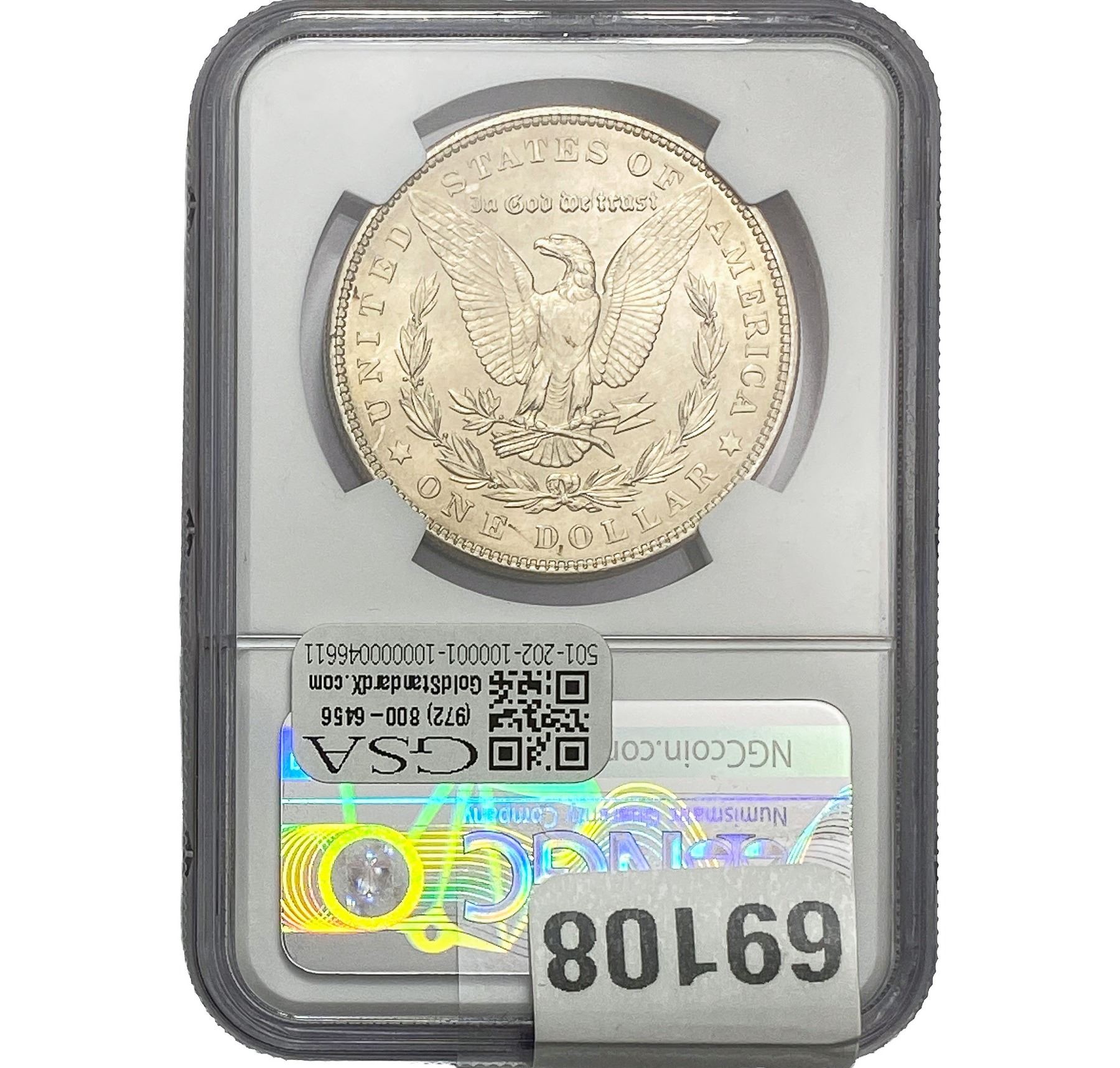e. Coins sold referencing a third-party grading service are sold “AS IS” without any express or implied warranty, except for a guarantee by GSA that they are genuine. Removal or alteration of the holder, voids all of Bidder’s claims concerning that Product. Certain warranties may be available from the grading services and Bidders are referred to them for further details: Numismatic Guaranty Corporation (NGC), PO Box 4776, Sarasota, FL 34230, www.ngccoin.com/services/writtenguarantee.asp; Professional Coin Grading Services (PCGS), PO Box 9458, Newport Beach, CA 92658, www.pcgs.com/guarantee.html; ANACS, 6555 S. Kenton St., Ste. 303, Englewood, CO 80111; and Independent Coin Grading Co. (ICG), 7901 East Bellview, Ave., Suite 50, Englewood, CO 80111.