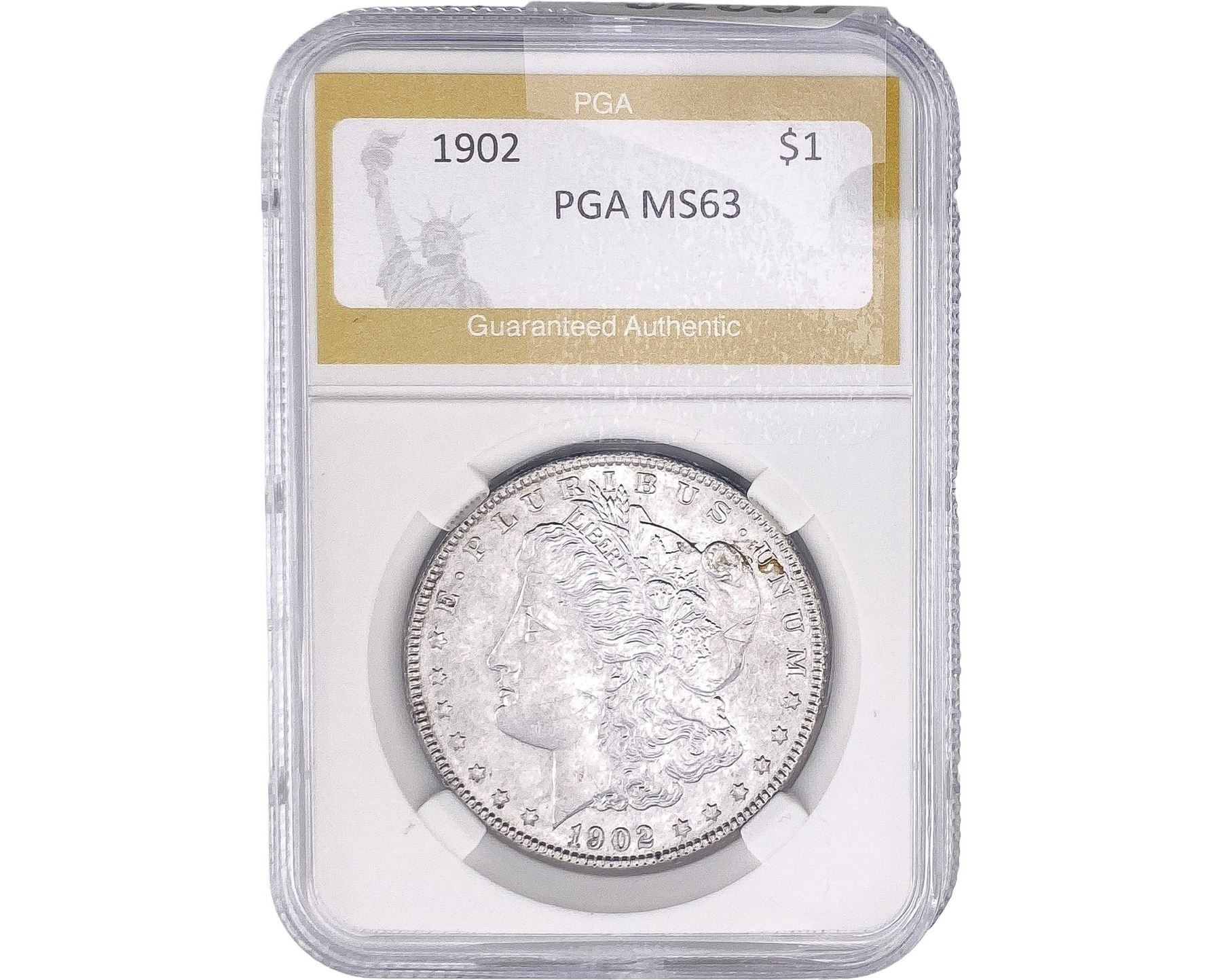 COINS AND CURRENCY LISTED IN GSA’S CATALOG AS GRADED AND ENCAPSULATED BY PCGS, NGC, ANACS, ICG, PCGS CURRENCY, PMG, PCGS BANKNOTE GRADING, CMC OR ANY OTHER THIRD-PARTY GRADING SERVICE ARE LIKEWISE SOLD “AS-IS” EXCEPT AS EXPRESSLY SET FORTH HEREIN. ALL THIRD-PARTY GRADING SERVICE GUARANTEES, INCLUDING AUTHENTICITY, ARE THE SOLE RESPONSIBILITY OF THE THIRD-PARTY GRADING SERVICE AND NOT WARRANTIES OR GUARANTEES OF GSA. BIDDERS SHOULD CONTACT THESE THIRD-PARTY GRADING SERVICES DIRECTLY WITH RESPECT TO ANY CLAIMS OR QUESTIONS THEY MAY HAVE CONCERNING THEIR GUARANTEES AND WARRANTIES. BIDDERS ACKNOWLEDGE AND AGREE THAT AUCTIONEER IS NOT BOUND BY OR LIABLE FOR ANY OPINION OR CERTIFICATION BY ANY THIRD-PARTY GRADING SERVICE. REMOVAL OF A PRODUCT FROM ITS PROTECTIVE CASING OR HOLDER OR ALTERATION OF ANY COIN HOLDER WAIVES ALL RIGHTS CONCERNING THE PRODUCT CONTAINED THEREIN.