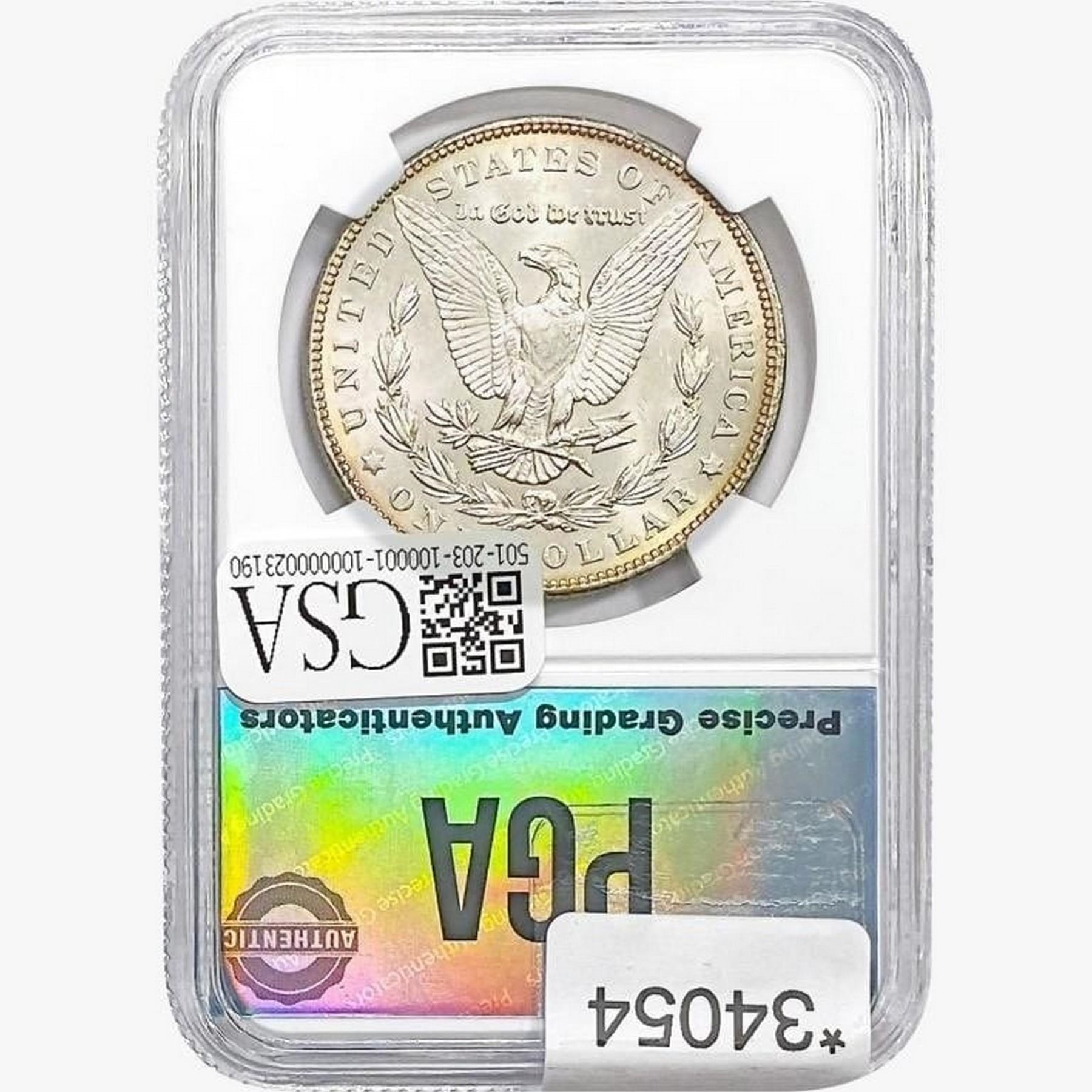l. All non-certified coins and currency are guaranteed genuine, but are not guaranteed as to grade, since grading is a matter of opinion, an art and not a science, and therefore the description rendered by GSA or any third-party grading service may not agree with the opinion of others (including trained experts), and the same expert may not grade the same item with the same grade at two different times. GSA may, but is not obligated to, express an opinion as to non-certified numismatic items, in GSA’s opinion, or by its employees’ experience and the current interpretation of the American Numismatic Association’s standards as of the date the catalog was prepared. There is no guarantee or warranty expressed or implied that the grading opinions utilized by GSA, if any, will meet the standards of any grading service at any time in the future.