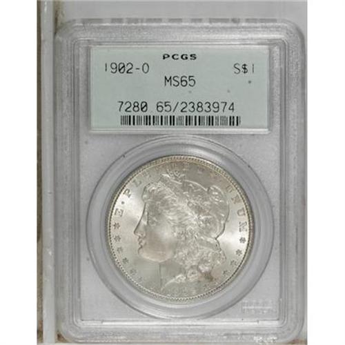 <B>1902-O $1 MS65 PCGS.</B></I> PCGS Population (3182/403). NGC Census: (4878/421). Mintage: 8,636,000. Numismedia Wsl. Price for NGC/PCGS coin in MS65: $160. (#7280)<BR><BR><b>Shipping:</b> Coins & Currency (<a target="_blank" href="http://www.heritageauctions.com/common/shipping.php">view shipping information</a>)
