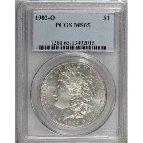 <B>1902-O $1 MS65 PCGS.</B></I> PCGS Population (3230/407). NGC Census: (4913/428). Mintage: 8,636,000. Numismedia Wsl. Price for NGC/PCGS coin in MS65: $140. (#7280)<BR><BR><B>Coin Engraver:</B> George T. Morgan<BR><BR><b>Shipping:</b> Coins & Currency (<a target="_blank" href="http://www.heritageauctions.com/common/shipping.php">view shipping information</a>)