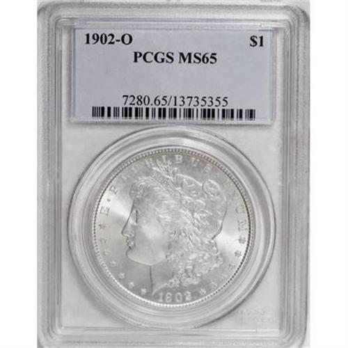 <B>1902-O $1 MS65 PCGS.</B></I> PCGS Population (3245/410). NGC Census: (4948/432). Mintage: 8,636,000. Numismedia Wsl. Price for NGC/PCGS coin in MS65: $140. (#7280)<BR><BR><B>Coin Engraver:</B> George T. Morgan<BR><BR><b>Shipping:</b> Coins & Currency (<a target="_blank" href="http://www.heritageauctions.com/common/shipping.php">view shipping information</a>)
