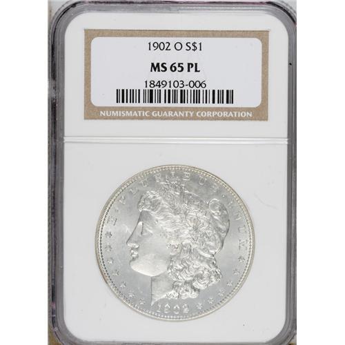 <B>1902-O $1 MS65 Prooflike NGC.</B></I> NGC Census: (125/11). PCGS Population (66/7). Numismedia Wsl. Price: $268. (#7281)<BR><BR><b>Shipping:</b> Coins & Currency (<a target="_blank" href="http://www.heritageauctions.com/common/shipping.php">view shipping information</a>)