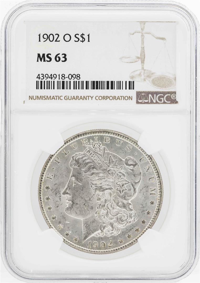 One 1902-O $1 Morgan Silver Dollar Coin NGC MS63. NGC Certified.