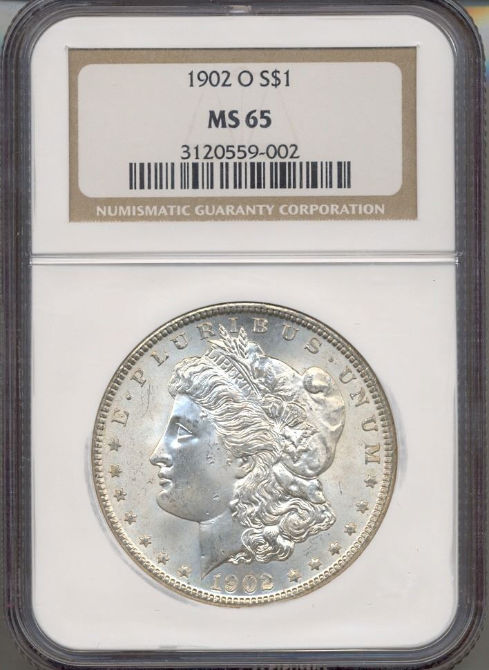 One 1902-O $1 Morgan Silver Dollar Coin NGC MS65.