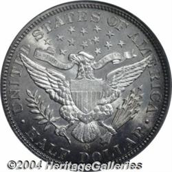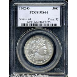 <B>1902-O<50C> MS64 PCGS.</B></I> Bright, untoned surfaces with much above-average sharpness for this overlooked O-mint issue. The coin would even aspire to a Gem rating were it not for a cluster of small marks in the lower right obverse field. Population: 8 in 64, 4 finer (7/04). <BR><BR><B>Important notice:</B> Heritage usually auctions material at the rate of 200-250 lots per hour. On some occasions eBay Live bid software or the Internet may not be able to keep up with the pace of the auction. We recommend placing a realistic absentee bid now as insurance to avoid disappointment. Occasionally the auctioneer may eliminate or reject an eBay Live bid, and the auctioneer may also reopen a lot after the close of the eBay live bidding (usually because we missed an audience bid), and may reject your bid even if it shows you as the winning bidder. By bidding via eBay Live, you agree that Heritage may award the lot to another bidder at its sole discretion under the circumstances described above or any other reasonable circumstances. Since eBay bids are not shown to us until we open the lot on the floor, we treat those bids just like floor bids. In most cases the floor responds before the eBay bid is presented to us, due to Internet lag time, so for consistency we have made it a policy that floor bids are always considered first over tie eBay live bids. Also please note that all Heritage lots purchased through eBay Live carry a 20% Buyer's Premium. Please make sure you read the Terms and Conditions before you bid. </span></font></tr></table></td></tr></table>