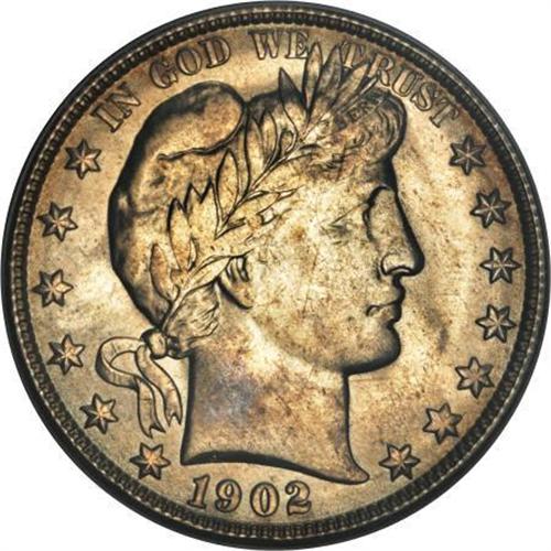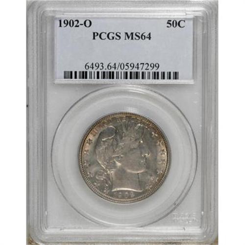 <B>1902-O 50C MS64 PCGS.</B></I> The 1902-O half dollar is notable within its series for its poor strike and poor luster. That the strike is weak on this piece is self-evident, with a notable lack of detail throughout the centers of the devices. That having been said, there are no complaints to be had about the quality of this piece's luster; indeed, the heavy cartwheel luster and the warm gold-tan color combine to provide a high degree of eye appeal. A few minor marks on the cheek seem to determine the grade. Population: 13 in 64, 6 finer (12/07).<BR><BR><B>Coin Engraver:</B> Charles E. Barber<BR><BR><b>Shipping:</b> Coins & Currency (<a target="_blank" href="http://www.heritageauctions.com/common/shipping.php">view shipping information</a>)