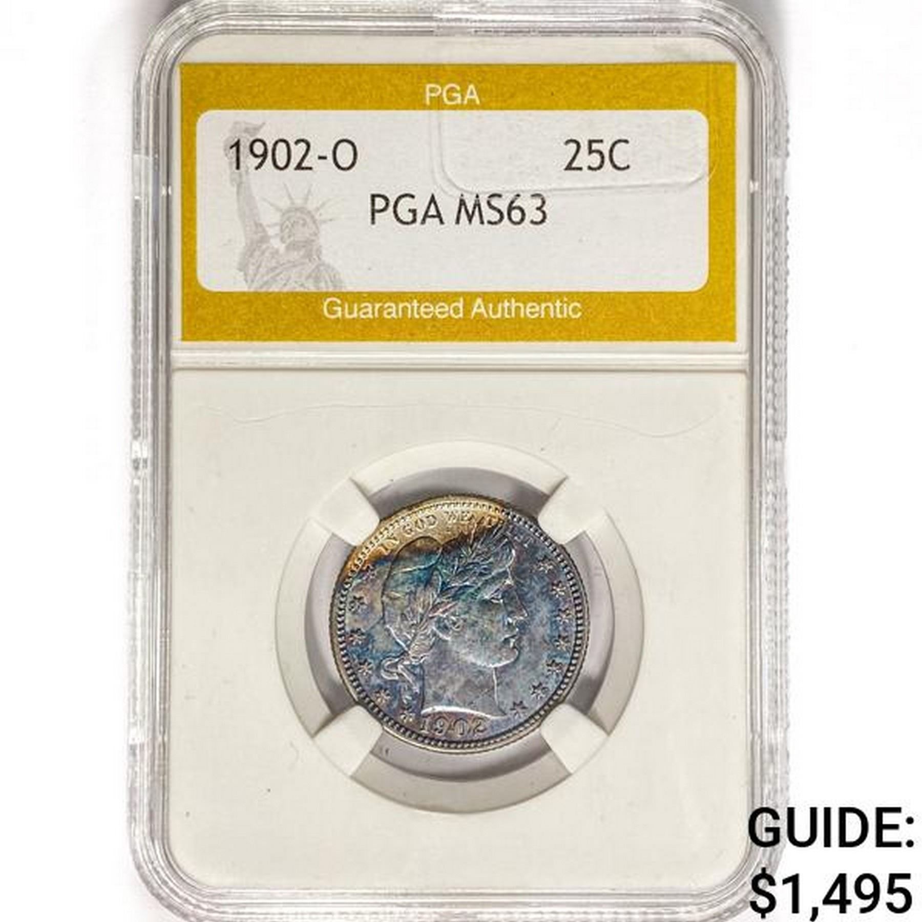 1902-O Barber Quarter PGA MS63
