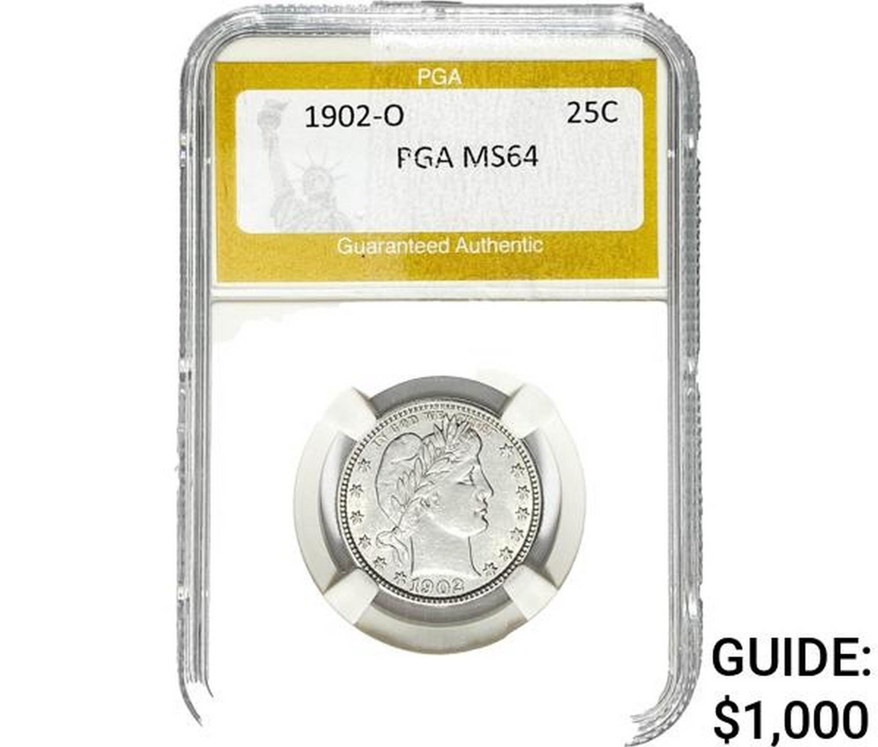 COINS AND CURRENCY LISTED IN GSA’S CATALOG AS GRADED AND ENCAPSULATED BY PCGS, NGC, ANACS, ICG, PCGS CURRENCY, PMG, PCGS BANKNOTE GRADING, CMC OR ANY OTHER THIRD-PARTY GRADING SERVICE ARE LIKEWISE SOLD “AS-IS” EXCEPT AS EXPRESSLY SET FORTH HEREIN. ALL THIRD-PARTY GRADING SERVICE GUARANTEES, INCLUDING AUTHENTICITY, ARE THE SOLE RESPONSIBILITY OF THE THIRD-PARTY GRADING SERVICE AND NOT WARRANTIES OR GUARANTEES OF GSA. BIDDERS SHOULD CONTACT THESE THIRD-PARTY GRADING SERVICES DIRECTLY WITH RESPECT TO ANY CLAIMS OR QUESTIONS THEY MAY HAVE CONCERNING THEIR GUARANTEES AND WARRANTIES. BIDDERS ACKNOWLEDGE AND AGREE THAT AUCTIONEER IS NOT BOUND BY OR LIABLE FOR ANY OPINION OR CERTIFICATION BY ANY THIRD-PARTY GRADING SERVICE. REMOVAL OF A PRODUCT FROM ITS PROTECTIVE CASING OR HOLDER OR ALTERATION OF ANY COIN HOLDER WAIVES ALL RIGHTS CONCERNING THE PRODUCT CONTAINED THEREIN.