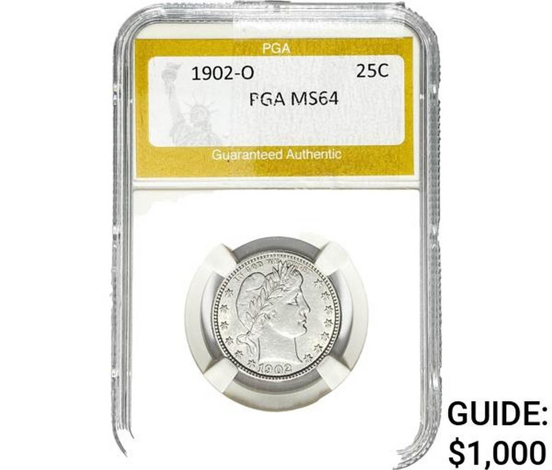 1902-O Barber Quarter PGA MS64