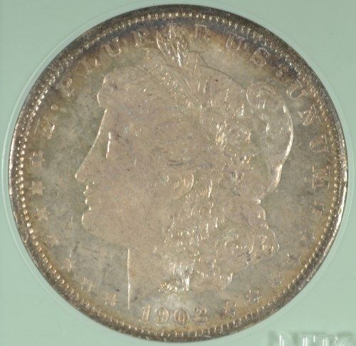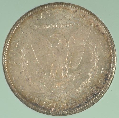 TONED MORGAN HAS REFLECTIVE FIELDS UNDER THE TONING. ESTIMATE $800 - $900. SILVER TOWNE AUCTIONS IS RATED AS A TOP COMPANY ON PROXIBLOG FOR ITS EXPERT GRADING