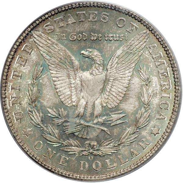 1902-O Morgan Dollar. PCGS graded MS-66. Beautiful multi-color toning on both sides. Pop 459; 12 finer (PCGS # 7280) .
