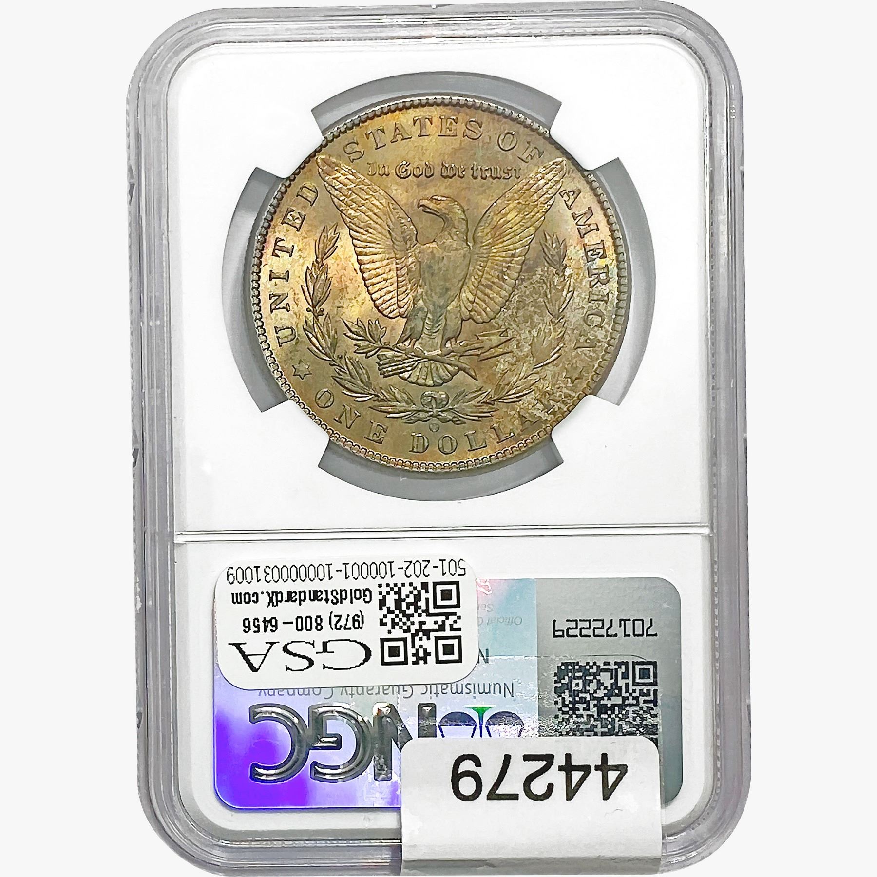 e. Coins sold referencing a third-party grading service are sold “AS IS” without any express or implied warranty, except for a guarantee by GSA that they are genuine. Removal or alteration of the holder, voids all of Bidder’s claims concerning that Product. Certain warranties may be available from the grading services and Bidders are referred to them for further details: Numismatic Guaranty Corporation (NGC), PO Box 4776, Sarasota, FL 34230, www.ngccoin.com/services/writtenguarantee.asp; Professional Coin Grading Services (PCGS), PO Box 9458, Newport Beach, CA 92658, www.pcgs.com/guarantee.html; ANACS, 6555 S. Kenton St., Ste. 303, Englewood, CO 80111; and Independent Coin Grading Co. (ICG), 7901 East Bellview, Ave., Suite 50, Englewood, CO 80111.