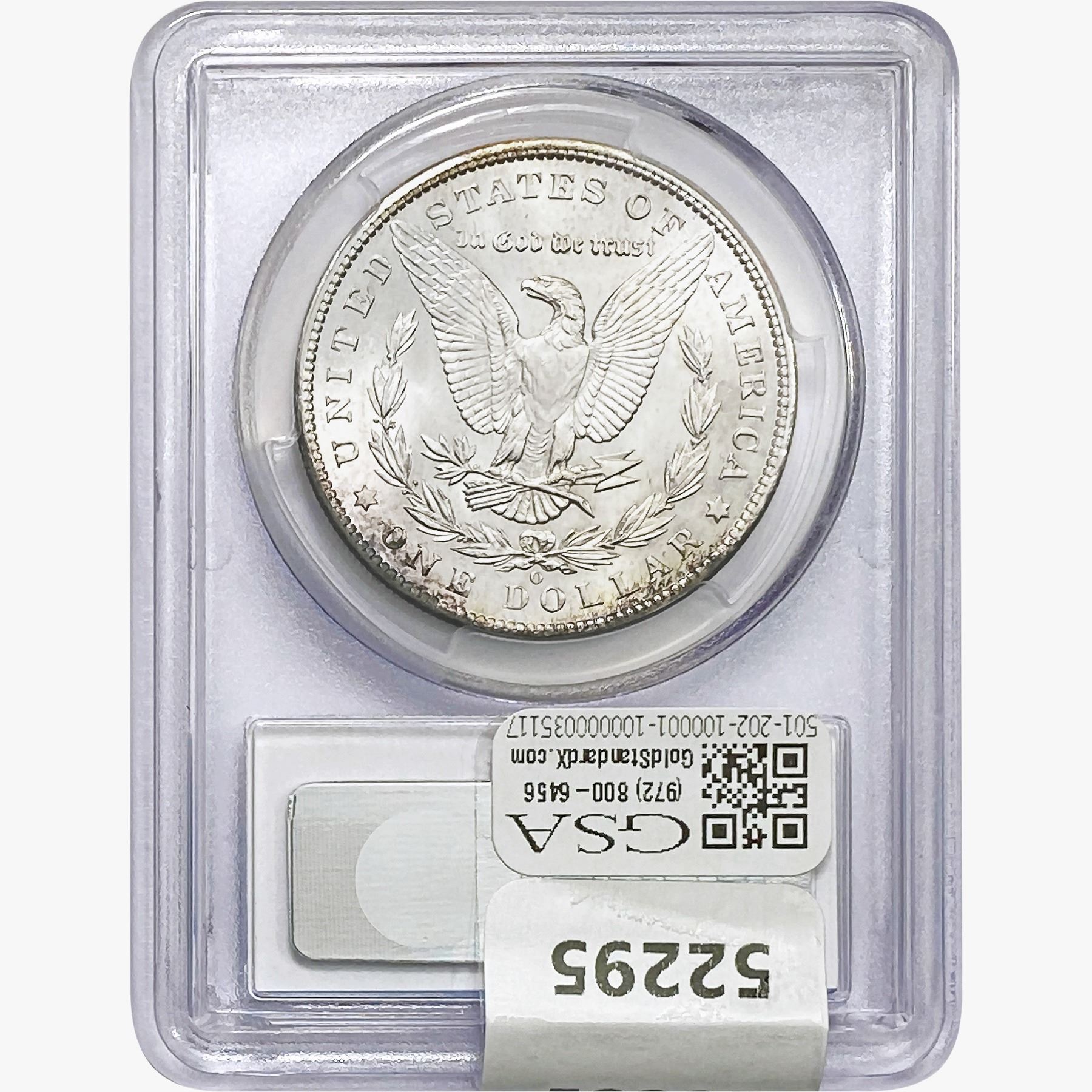 COINS AND CURRENCY LISTED IN GSA’S CATALOG AS GRADED AND ENCAPSULATED BY PCGS, NGC, ANACS, ICG, PCGS CURRENCY, PMG, PCGS BANKNOTE GRADING, CMC OR ANY OTHER THIRD-PARTY GRADING SERVICE ARE LIKEWISE SOLD “AS-IS” EXCEPT AS EXPRESSLY SET FORTH HEREIN. ALL THIRD-PARTY GRADING SERVICE GUARANTEES, INCLUDING AUTHENTICITY, ARE THE SOLE RESPONSIBILITY OF THE THIRD-PARTY GRADING SERVICE AND NOT WARRANTIES OR GUARANTEES OF GSA. BIDDERS SHOULD CONTACT THESE THIRD-PARTY GRADING SERVICES DIRECTLY WITH RESPECT TO ANY CLAIMS OR QUESTIONS THEY MAY HAVE CONCERNING THEIR GUARANTEES AND WARRANTIES. BIDDERS ACKNOWLEDGE AND AGREE THAT AUCTIONEER IS NOT BOUND BY OR LIABLE FOR ANY OPINION OR CERTIFICATION BY ANY THIRD-PARTY GRADING SERVICE. REMOVAL OF A PRODUCT FROM ITS PROTECTIVE CASING OR HOLDER OR ALTERATION OF ANY COIN HOLDER WAIVES ALL RIGHTS CONCERNING THE PRODUCT CONTAINED THEREIN.