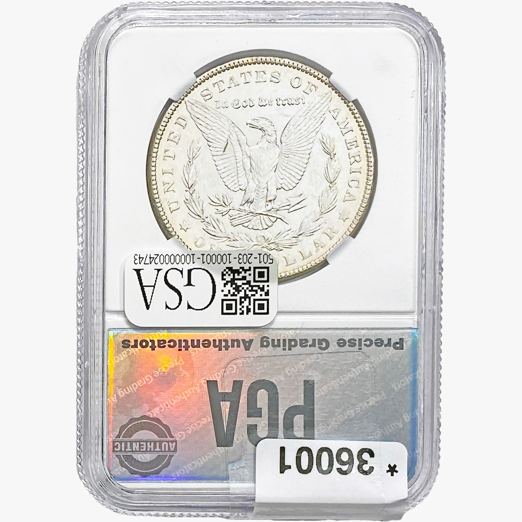 COINS AND CURRENCY LISTED IN GSA’S CATALOG AS GRADED AND ENCAPSULATED BY PCGS, NGC, ANACS, ICG, PCGS CURRENCY, PMG, PCGS BANKNOTE GRADING, CMC OR ANY OTHER THIRD-PARTY GRADING SERVICE ARE LIKEWISE SOLD “AS-IS” EXCEPT AS EXPRESSLY SET FORTH HEREIN. ALL THIRD-PARTY GRADING SERVICE GUARANTEES, INCLUDING AUTHENTICITY, ARE THE SOLE RESPONSIBILITY OF THE THIRD-PARTY GRADING SERVICE AND NOT WARRANTIES OR GUARANTEES OF GSA. BIDDERS SHOULD CONTACT THESE THIRD-PARTY GRADING SERVICES DIRECTLY WITH RESPECT TO ANY CLAIMS OR QUESTIONS THEY MAY HAVE CONCERNING THEIR GUARANTEES AND WARRANTIES. BIDDERS ACKNOWLEDGE AND AGREE THAT AUCTIONEER IS NOT BOUND BY OR LIABLE FOR ANY OPINION OR CERTIFICATION BY ANY THIRD-PARTY GRADING SERVICE. REMOVAL OF A PRODUCT FROM ITS PROTECTIVE CASING OR HOLDER OR ALTERATION OF ANY COIN HOLDER WAIVES ALL RIGHTS CONCERNING THE PRODUCT CONTAINED THEREIN.