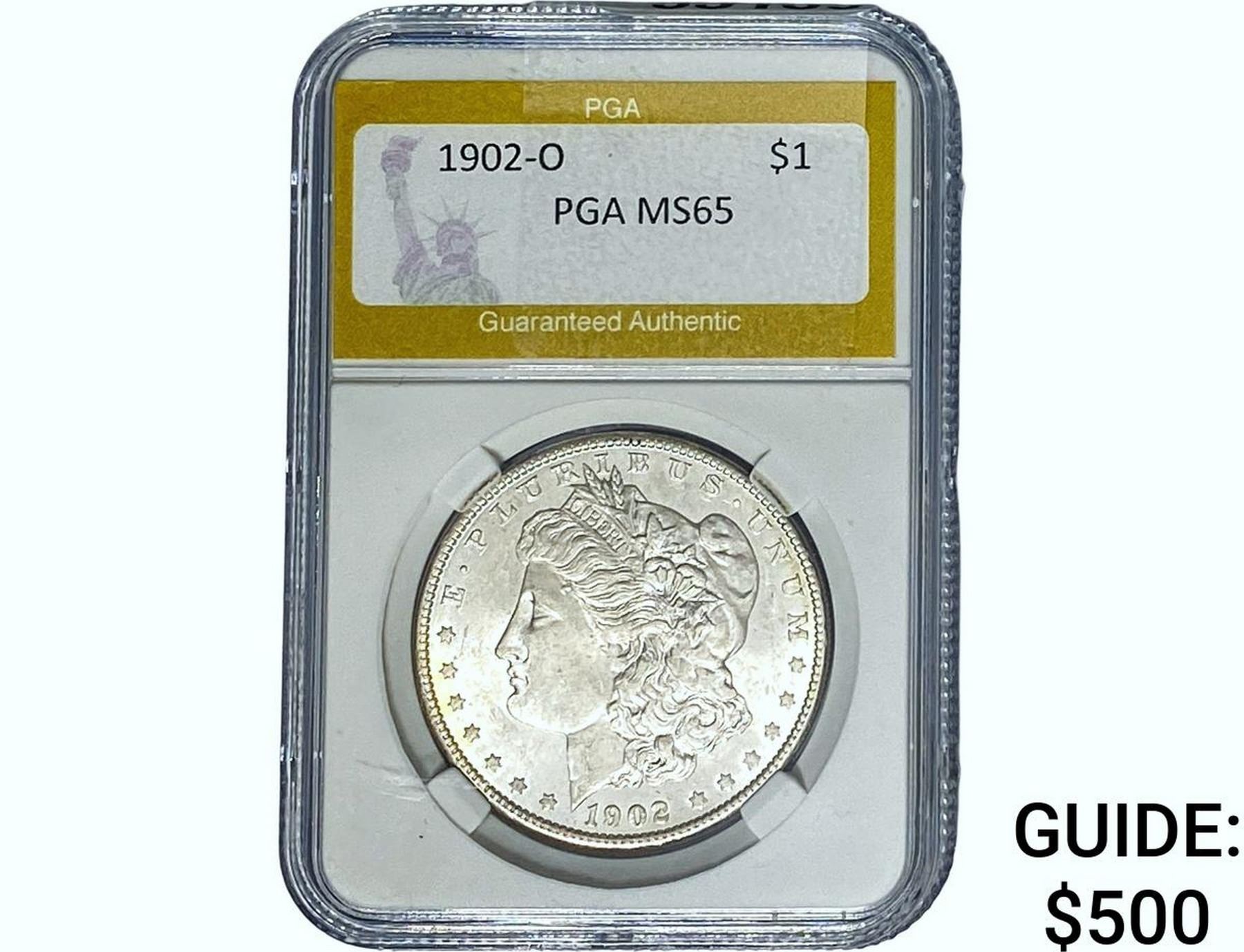 COINS AND CURRENCY LISTED IN GSA’S CATALOG AS GRADED AND ENCAPSULATED BY PCGS, NGC, ANACS, ICG, PCGS CURRENCY, PMG, PCGS BANKNOTE GRADING, CMC OR ANY OTHER THIRD-PARTY GRADING SERVICE ARE LIKEWISE SOLD “AS-IS” EXCEPT AS EXPRESSLY SET FORTH HEREIN. ALL THIRD-PARTY GRADING SERVICE GUARANTEES, INCLUDING AUTHENTICITY, ARE THE SOLE RESPONSIBILITY OF THE THIRD-PARTY GRADING SERVICE AND NOT WARRANTIES OR GUARANTEES OF GSA. BIDDERS SHOULD CONTACT THESE THIRD-PARTY GRADING SERVICES DIRECTLY WITH RESPECT TO ANY CLAIMS OR QUESTIONS THEY MAY HAVE CONCERNING THEIR GUARANTEES AND WARRANTIES. BIDDERS ACKNOWLEDGE AND AGREE THAT AUCTIONEER IS NOT BOUND BY OR LIABLE FOR ANY OPINION OR CERTIFICATION BY ANY THIRD-PARTY GRADING SERVICE. REMOVAL OF A PRODUCT FROM ITS PROTECTIVE CASING OR HOLDER OR ALTERATION OF ANY COIN HOLDER WAIVES ALL RIGHTS CONCERNING THE PRODUCT CONTAINED THEREIN.