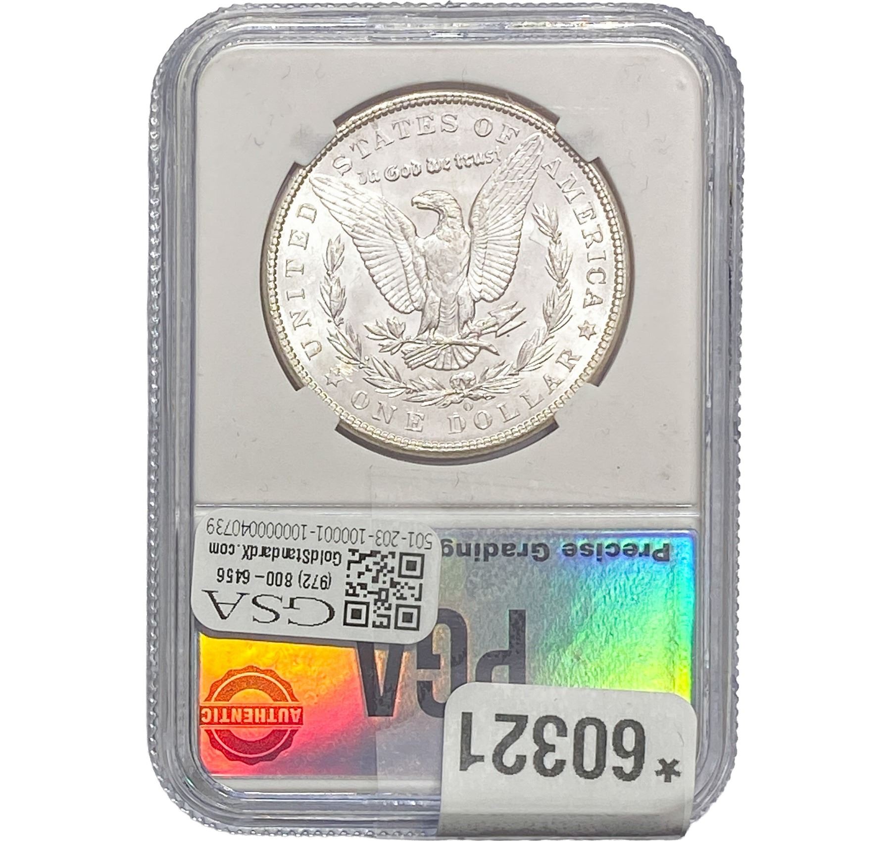e. Coins sold referencing a third-party grading service are sold “AS IS” without any express or implied warranty, except for a guarantee by GSA that they are genuine. Removal or alteration of the holder, voids all of Bidder’s claims concerning that Product. Certain warranties may be available from the grading services and Bidders are referred to them for further details: Numismatic Guaranty Corporation (NGC), PO Box 4776, Sarasota, FL 34230, www.ngccoin.com/services/writtenguarantee.asp; Professional Coin Grading Services (PCGS), PO Box 9458, Newport Beach, CA 92658, www.pcgs.com/guarantee.html; ANACS, 6555 S. Kenton St., Ste. 303, Englewood, CO 80111; and Independent Coin Grading Co. (ICG), 7901 East Bellview, Ave., Suite 50, Englewood, CO 80111.