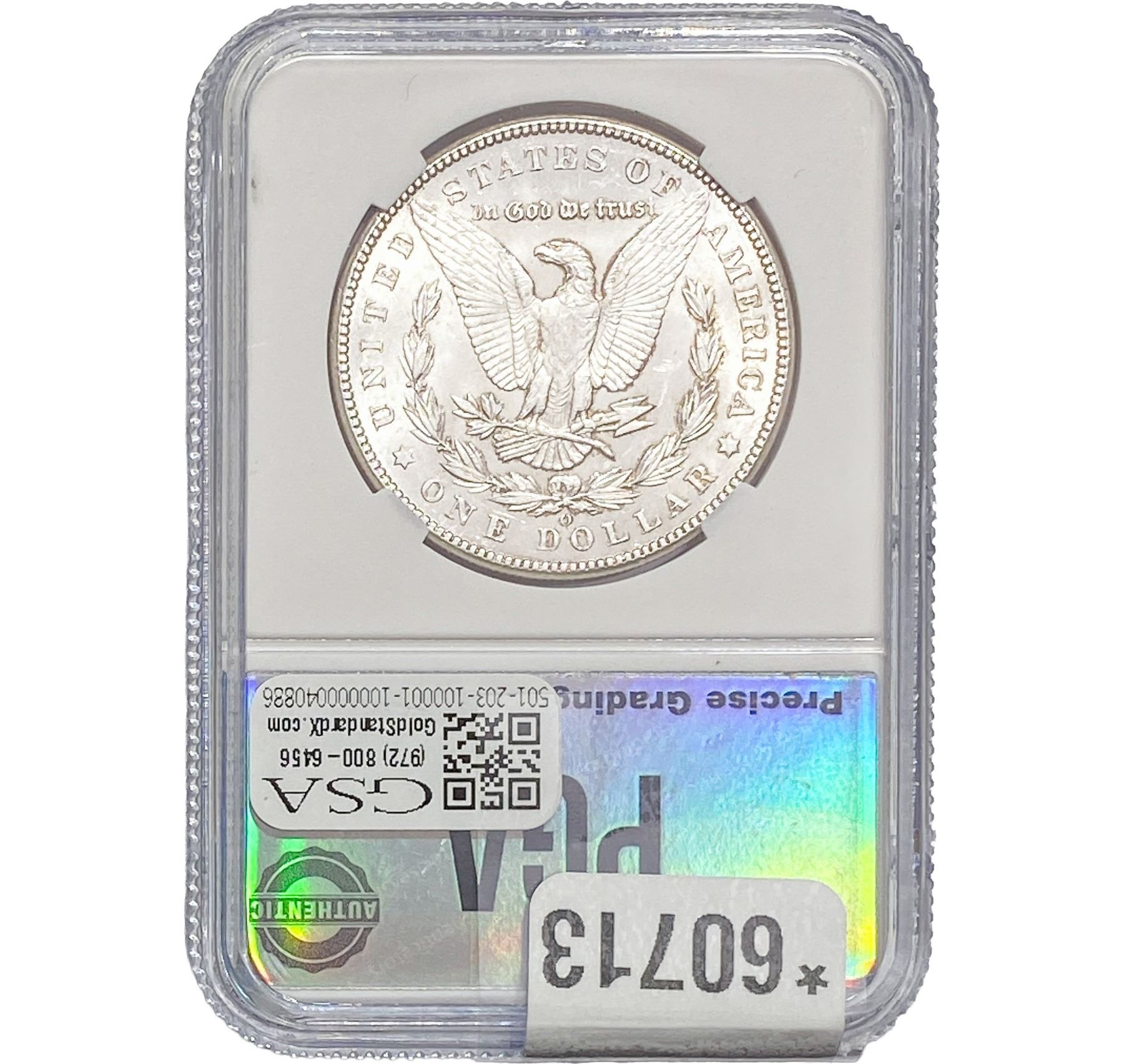 l. All non-certified coins and currency are guaranteed genuine, but are not guaranteed as to grade, since grading is a matter of opinion, an art and not a science, and therefore the description rendered by GSA or any third-party grading service may not agree with the opinion of others (including trained experts), and the same expert may not grade the same item with the same grade at two different times. GSA may, but is not obligated to, express an opinion as to non-certified numismatic items, in GSA’s opinion, or by its employees’ experience and the current interpretation of the American Numismatic Association’s standards as of the date the catalog was prepared. There is no guarantee or warranty expressed or implied that the grading opinions utilized by GSA, if any, will meet the standards of any grading service at any time in the future.