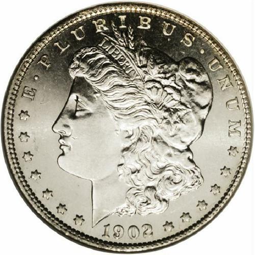 <B>1902-O<img border='0' src='http://www.heritagecoins.com/images/star.gif' width=10 height=10>$1> MS65 Deep Mirror Prooflike ANACS.</B></I> When offered in Prooflike or Deep Mirror Prooflike, the 1902-O is not apt to display much, if anything in the way field-to-device contrast. While prooflikes are generally available thanks to the 1968 dispersion of one or two bags, accurately graded Deep Mirror Prooflikes are several times rarer. This Gem displays a silver-white sheen that is interrupted by a minimal number of wispy bagmarks. Well struck.