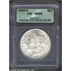 1902-O S$1 MS66 ICG. Full, but muted, luster with nice definition and no glaring defects. Important notice: We expect to be auctioning lots at the rate of 200-250 per hour. Sometimes eBay Premier live bid software cannot keep up with that pace, so we strongly recommend that you place a realistic proxy bid now as insurance to avoid disappointment. Also please note that all Heritage/CAA lots purchased through eBay Premier carry a 20% Buyer's Premium. Please make sure you read the Terms and Conditions.