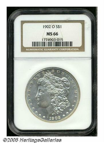 <B>1902-O<S$1> MS66 NGC.</B></I> This O-mint dollar is sharply struck, save for the hair over Liberty's ear, and possesses virtually white, lustrous surfaces. A few tiny marks on Liberty's face and neck are consistent with the assigned grade.
