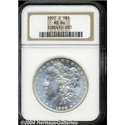 <B>1902-O<S$1> MS66 NGC.</B></I> A boldly struck and nearly brilliant premium Gem with potent luster and impressive preservation. The mintmark is crisply repunched. The finest affordable grade of this later O-mint issue. <BR><BR><B>Important notice:</B> Heritage usually auctions material at the rate of 200-250 lots per hour. On some occasions eBay Live bid software or the Internet may not be able to keep up with the pace of the auction. We recommend placing a realistic absentee bid now as insurance to avoid disappointment. Occasionally the auctioneer may eliminate or reject an eBay Live bid, and the auctioneer may also reopen a lot after the close of the eBay live bidding (usually because we missed an audience bid), and may reject your bid even if it shows you as the winning bidder. By bidding via eBay Live, you agree that Heritage may award the lot to another bidder at its sole discretion under the circumstances described above or any other reasonable circumstances. Since eBay bids are not shown to us until we open the lot on the floor, we treat those bids just like floor bids. In most cases the floor responds before the eBay bid is presented to us, due to Internet lag time, so for consistency we have made it a policy that floor bids are always considered first over tie eBay live bids. Also please note that all Heritage lots purchased through eBay Live carry a 20% Buyer's Premium. Please make sure you read the Terms and Conditions before you bid.