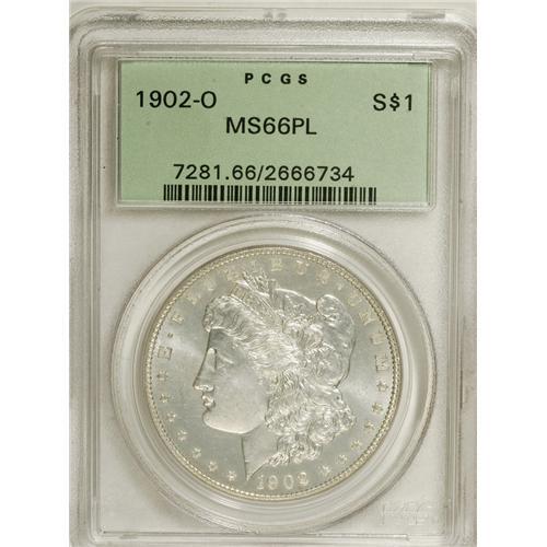 <B>1902-O S$1 MS66 Prooflike PCGS.</B></I> A boldly struck and essentially untoned Premium Gem. The obverse is remarkably clean. Housed in a green label holder. Population: 7 in 66 Prooflike, 0 finer (2/07).<BR><BR><b>Shipping:</b> Coins & Currency (<a target="_blank" href="http://www.heritageauctions.com/common/shipping.php">view shipping information</a>)