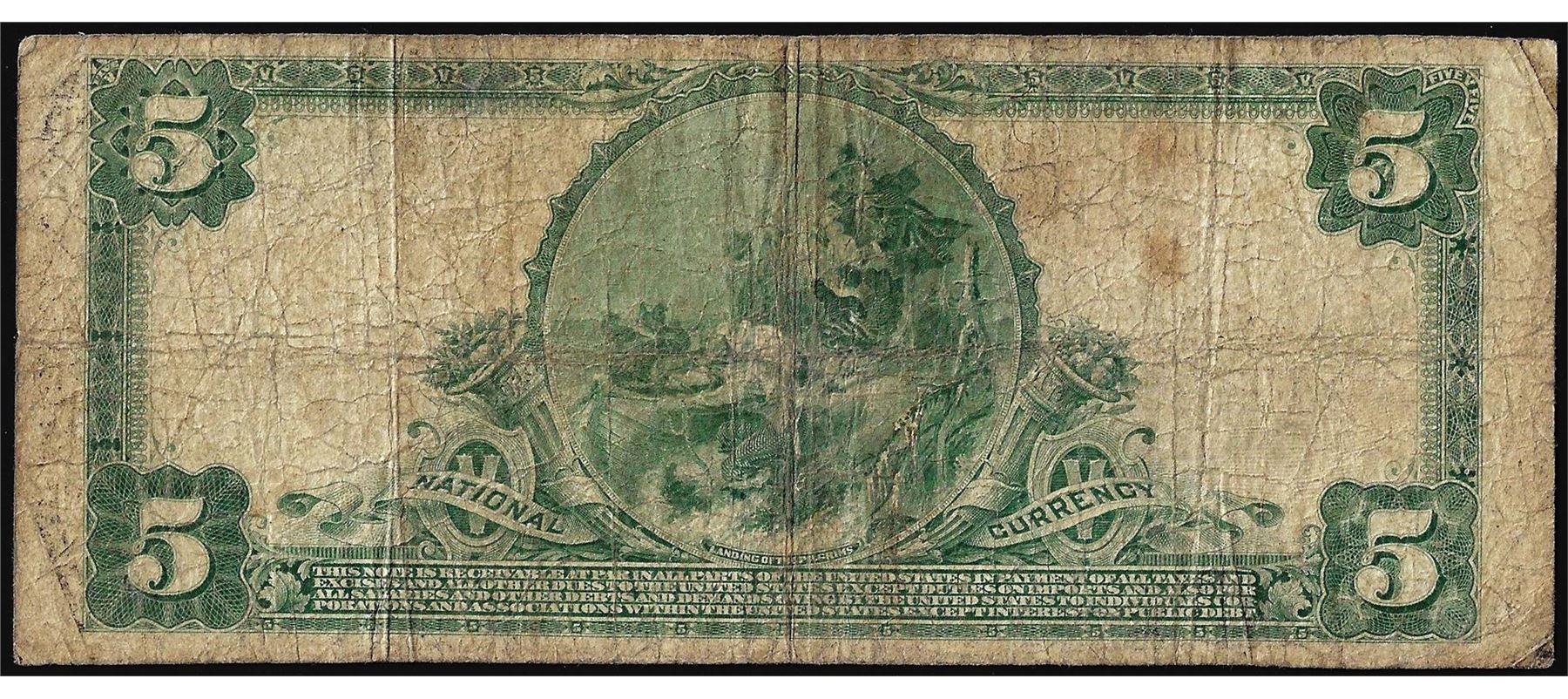 One 1902 PB $5 F & M of Washington, District of Columbia CH# 1928 National Currency Note.